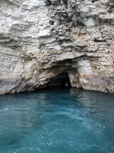 Bellissima grotta marina alla quale si accede da una piccola apertura alta circa 2 metri. Dopo un breve tunnel si apre in tutta la sua magnificenza mostrando la sua volta bianca e altissima,le pareti invece variano dal verde al viola. Una vera meraviglia. Alla base una piccola spiaggia di ghiaia fine mi ha permesso di prendere fiato prima di fare ritorno a nuoto alla spiaggia di Vignanotica, mio punto di partenza. Per ammirarla al meglio occorre andare di primo mattino, col Sole basso. Di pomeriggio è praticante al buio e se non avete una torcia non potete ammirarla. Sono partito a nuoto dalla spiaggia di Vignanotica e tra andata e ritorno ci ho impiegato circa mezz'ora. Da fare solo se siete nuotatori esperti e con mare e calmo. Con mare mosso uscire dalla grotta è molto difficoltoso oltre che pericoloso. Ad ogni modo ci sono le visite guidate in barca con partenza dal porto...