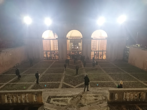 Read moreAl di là del fatto che nell'evidenza è un posto bellissimo, che tutti sappiamo essere utilizzato per spettacoli, mostre e set fotografici e che non sempre è aperto, focalizzerei la recensione su altri temi. Mi piacerebbe capire cosa vuole essere davvero questo luogo. Un resto? (la parte sinistra del palazzetto è stata bombardata nella Seconda Guerra Mondiale ed è ricostruita); una rovina? (la chiesa non c'è più ma ci sono le sue parti basamentali e di fondazione in mezzo alle erbacce e agli alberi); una integrazione incompiuta? (il piano nobile è solo accennato ma non è stato mai ricostruito). Questo è un luogo di proprietà privata (Azzurri) ma di valenza fortemente pubblica (città pre terremoto) . Come va gestito? Chi deve intervenire? Con i soldi di chi? Non ho visto alcun progetto che restituisca all'area della chiesa la sua necessaria valenza di spazio storico, né delle possibili proposte per il piano nobile. Insomma, posto bellissimo ma che non sa bene cosa vorrà...