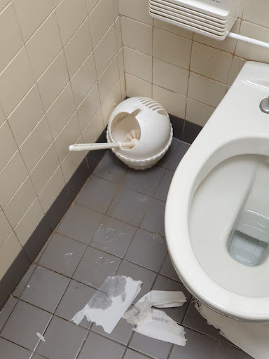 Let's move on to the cleanliness of the place. Just look at the photos. This is how lady's restroom looked like. Luckily I had disinfection gel. The lock on the door does not work as you can see in the video.