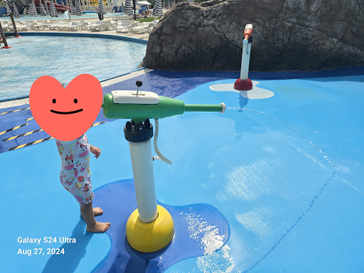 Read moreSo, first of all we had quite a lot of fun on the rides and a very good afternoon for people of all ages, but coming here is certainly an experience for lots of reasons. It is very dated, it looks like it needed a lot of renovations 5 years ago, which didn't happen. The lifeguards, oh the lifeguard, they leave a lot to be desired, mostly they appear to be having more fun than the guests, chatting up the younger females visitors or watching their phones, maybe 50% were watching the guests. It is the only place where I have seen a lifeguard teaching and encouraging kids how to do a backflip into water 1m deep or on another ride chatting with friends whilst guests (appeared to be under 16 years old) operated the rides for them. Some of the rides have a real feel of danger, which added to the excitement for us most of the time (less fun when you have a child on a ride and other kids are hurtling towards you before you have finished), we also saw a chap bleeding after hitting his head on a ride, which could happen anywhere, but was always more likely at this water park. We were aware that when visiting, everything is an extra, lockers (7 euros for a large locker which first two medium bags), shade (30 euros for a gazebo and two sun loungers), rubber rings (4-5 euros) etc. We were aware before we visited. I just hope that no one gets hurt here, feels like an accident...