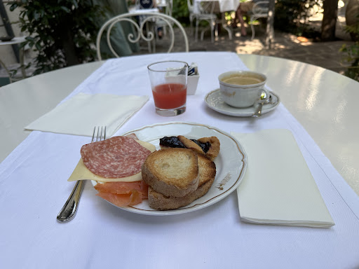 However, the beds were hard and the pillows long past the point of needing to be replaced because of a lack of softness. The shelf in our shower was tipping forward, you could not put a bar of soap or shampoo on it because they slipped off -- and the disheartening thing was the the proprietors must have known this because they had a permanent sign about the shelf not being secure, as compared to simply preparing it. The outlet in the bathroom and one of the outlets in our room did not work. The breakfast was mediocre, compared to included breakfasts we experienced at other hotels in Italy. Air conditioning was poor, we ended up sleeping with the window open and tolerating the road noises.