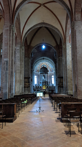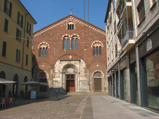 Read moreThe Basilica di San Simpliciano (Bishop of Milan in the 4th Century) has a large piazza before it, just off the main Corso Garibaldi. When I visited, a jazz group was preparing to entertain at a cafe on the piazza. The two side doors of the basilica are topped with colorful mosaic semicircles. One depicts the martyrs Martirio, Sisinnio and Alessandro whose relics are enshrined in the church. The other depicts SS...