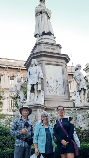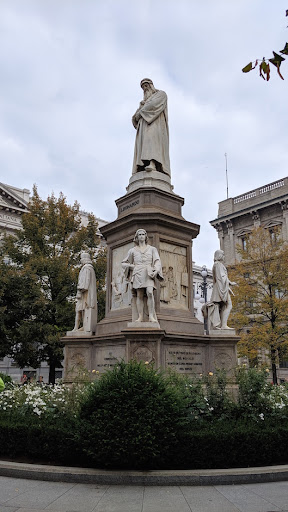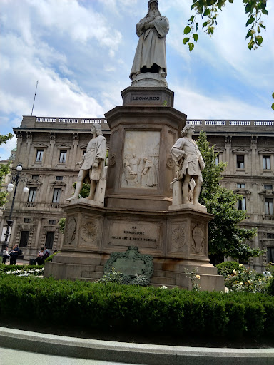 Read moreMonument in honor of Leonardo da Vinci, done by Pietro Magni in the 18 hundreds. The statue includes 4 of his disciples and 4 of his abilities: artist, architect, engineer, sculptor. Most people do not know that Leonardo lived in Milan for 26 years and left a huge legacy. He worked for Ludovico Sforza, il Moro between 1482-1499. They were both born in the same year, and they had a parity relationship. Ludovico had a deep admiration and allowed da Vinci to express himself as his best, and for this reason today we have The Last Supper and many of his studies in science, anatomy, geometry etc. It is curious that he also was employed as a master of ceremonies, directing plays, banquets, sumptuous parties, developing all his geniality in ephemeral shows. I love Leonardo and have been studying in depth his life. if you would like to listen to legends, real stories, and his philosophical view of art I've learned so far while walking through Milan, see...