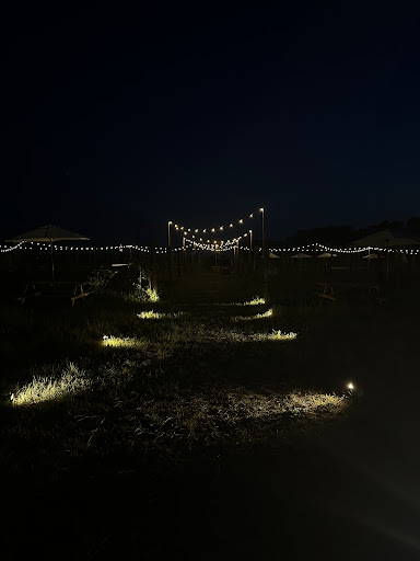 Read moreL'idea è davvero buona. Allestire questo spazio creando un'atmosfera davvero invitante, rilassante e un po' fuori dal comune è sicuramente vincente. Comodo parcheggio gratuito all'ingresso e sentieri battuti in paglia delimitati dalle luci che ti accompagnano al chiosco. Dettaglio non da poco, tra il parcheggio e l'ingresso ci sono toilette in ordine e pulite. Alla cassa si paga in unica soluzione (non sono accettati pagamenti divisi per persone ma un unico pagamento e poi in privato ce la si gestisce). Ti aspetta il cestino pronto e il tavolo che hai riservato. Il cestino contiene: Salumi (nel ns caso fettine di salame e pancetta cotta entrambi super) 2 diversi tipi di formaggio (molto buoni) 4 porzioncine di torta salata tipo pasqualina Cartoccio con pezzetti di focaccia e fette di pane, pomodorini, un peperoncino rosso dolce, un assaggio di more e mirtilli. tagliere, posate e tovaglioli. Noi abbiamo preso una bottiglia di prosecco con due calici (di plastica). Unica nota dolente ma prevedibile, una flotta di zanzare. Armarsi quindi di repellente che consiglio usare subito prima di entrare e poi ripetere l'azione più volte...in questo modo l'abbiamo scampata! È stata una bellissima esperienza. Trovo che i prezzi siano un po' troppo alti, in particolare la bottiglia di vino in quanto non è un contesto di ristorazione con servizio al tavolo e 25€ li considero fuori misura. Diciamo che non è proprio per tutte le tasche. Se invece la scelta è voluta perché si vuole selezionare un certo tipo di clientela allora nulla da dire. Almeno una volta da provare,...