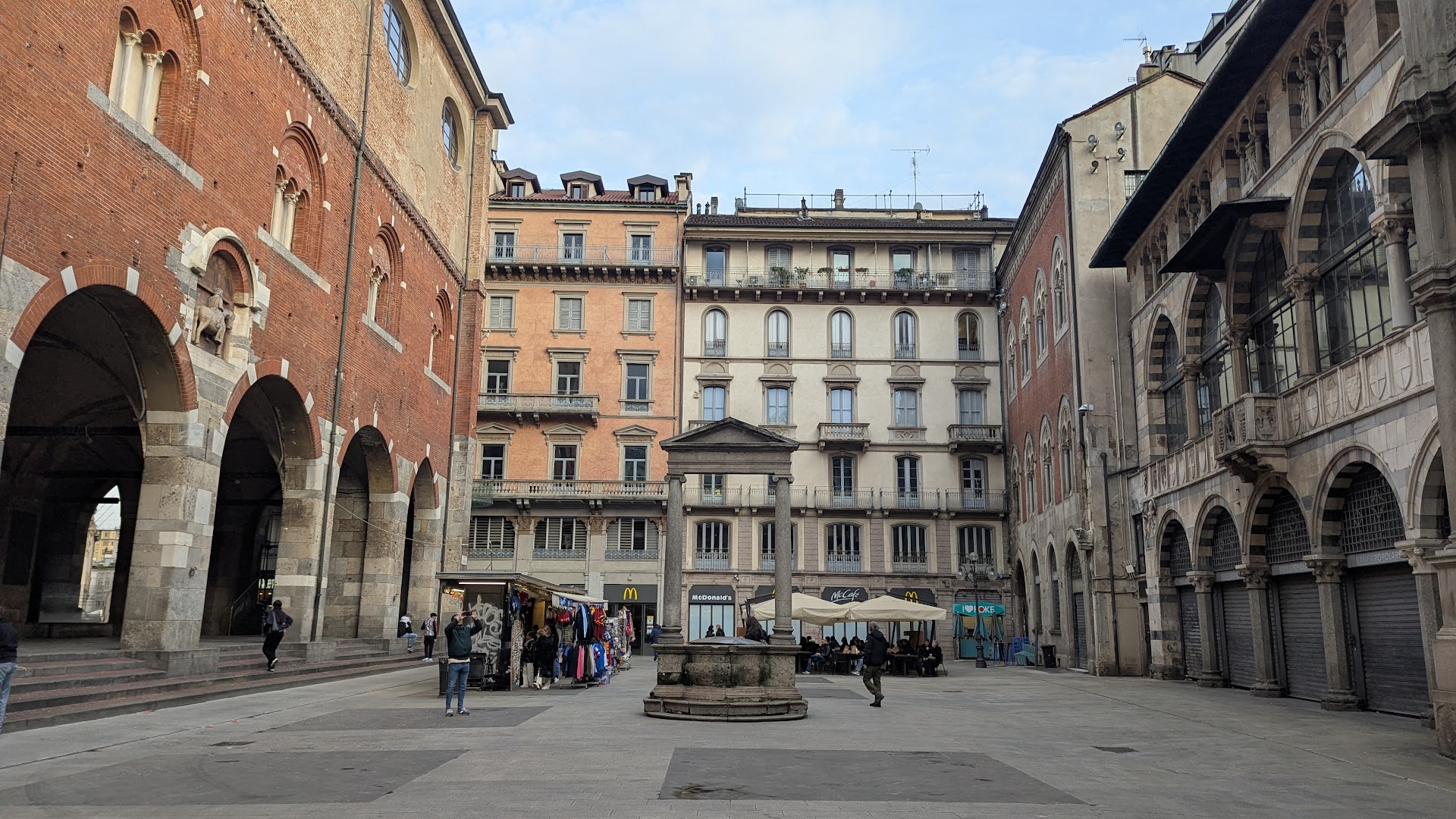 La Piazza dei Mercanti est un lieu animé et dynamique, où se mêlent habitants et visiteurs dans une atmosphère conviviale et chaleureuse. Entourée de cafés, de boutiques et de restaurants pittoresques, la place est l'endroit idéal pour faire une pause et profiter de l'ambiance authentique de Milan. En été, la place accueille souvent des événements culturels et des marchés locaux, ajoutant encore plus à son charme.
