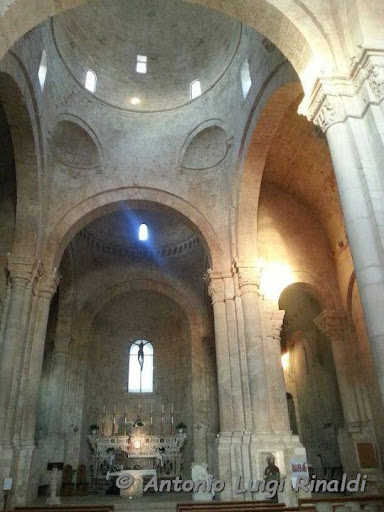 Le cappelle laterali risalgono al XV- XVI secolo. L’interno, vasto e suggestivo, è suddiviso in tre navate; quella centrale è dominata da tre cupole di diversa altezza: la più antica e decorata è sul transetto. I capitelli dei quattro pilastri cruciformi sono scolpiti con motivi zoomorfi, antropomorfi e vegetali. Risalente al XII secolo, l’acquasantiera, detta del saraceno, posta a destra dell’ingresso meridionale, ci mostra un uomo dai tratti africani che regge la vasca dell’acqua. Un altorilievo in pietra detto del Redentore, del XIII secolo, fa oggi da base all’altare.