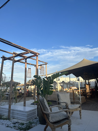 Pros: beautiful beach club, boho chic style, comfortable chairs. Cons: very expensive even for a beach club. Food very weak, drink service- very slow. We waited 50 min for a bottle of Prosecco and had remind 3 times (it wasn’t busy). Impossible to get a waiter to your sun beds.