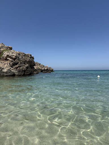 Impossibile, arrivando nel pomeriggio, trovare un angolo di spiaggia, monopolizzata da personaggi che piuttosto dell'ombrellone si sono affidati ai gazebo; cercare uno scoglio è stato altrettanto fallimentare. Sembrava di essere a Dover : scendere al mare dalla scogliera è stato impossibile Tempo di permanenza totale : tre minuti, e una bottiglia d'acqua comprata al chiosco per gestire i trentacinque gradi in pieno sole - ombra, alle tre, non ne...