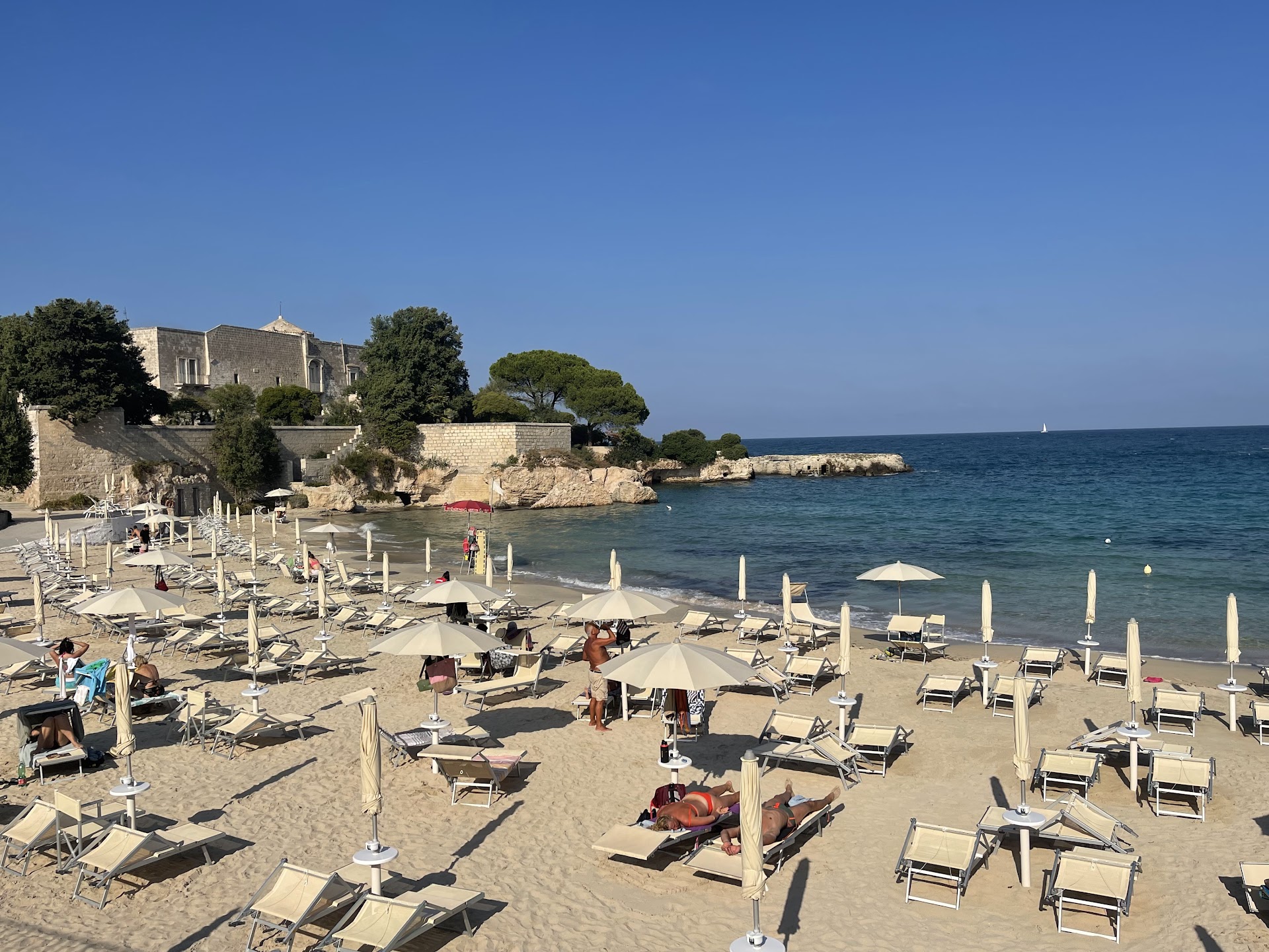This is a 5-star lido. If you take the time to read the reviews, most of the negative reviews highlight the higher price tag. If you’re someone who spent time and good money to travel to Puglia, then this is not where you should stop paying the extra 20 euros for a beach experience. Few things I want to note: The food. This is not grubby beach food. This is exceptionally crafted and truly remarkable Italian food. The chef clearly takes his time to make a special menu, and please make sure to check out the pasta of the day - our day was a spaghettone with chicory and clams. Phenomenal. The location. From at least the other lidos I compared, this is the only one that has a Medieval Castello in the beach backdrop in this area. It’s worth it for that alone. The beach. They comb it everyday, which is why it’s missing seaweed and other unwanted surface junk. It’s a clean, powdery sand beach with reduced waves (because of it’s angle). This place was top notch, and I firmly believe it’s worthy the higher price tag. To note: I spent 60 euros in late-September for the 4th row, two Sun beds, parking, and an umbrella. I did not make a reservation, but I also went on a Thursday. So can’t speak of its need during the rest of the year.