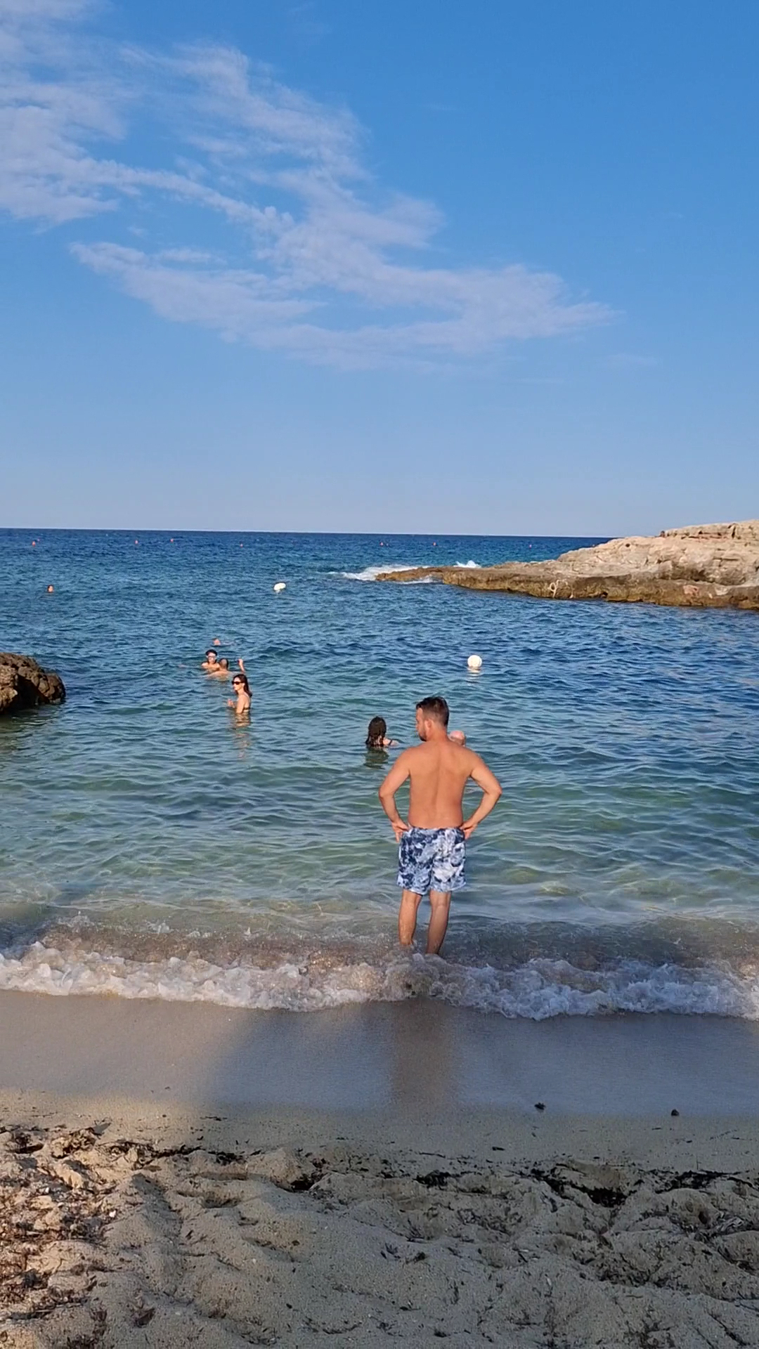Lovely beach with beautiful water. Quite busy but we arrived at 10.30 pm and still found a spot to sit. No shade do good to bring a parasol. Gets realtid hot. A bit of a walk from the road and some climbing. No nearby parking...