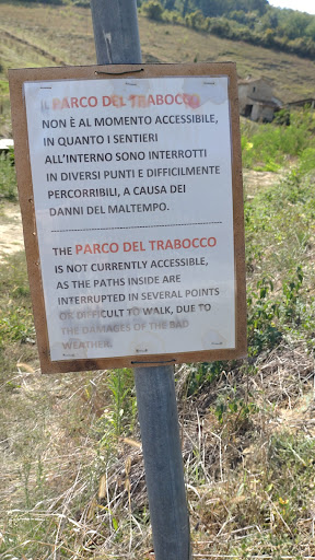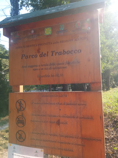 ...Nel nulla a due passi dal mondo rarefatto delle colline marchigiane, un luogo segreto si schiude: facili sentieri accompagnano un ruscello che va chissà dove... La valle si apre misteriosa e arcana alle falde di Montecarotto e Poggio San Marcello. Il piccolo rivolo si divide a ipsilon e le possibilità si sdoppiano: due minuscole cascate sovrappongono la loro flebile voce ai cinguettii: sono gli unici suoni che riecheggiano intorno. Ma giunti davanti ai ruderi del vecchio mulino, dalle pietre risorgono le voci dei bambini che fino agli anni cinquanta del secolo scorso si bagnavano al fiumicello e delle famiglie che venivano qui a sbiancare la canapa...Ma, partita ormai l'ultima famiglia, il tempo se ne è andato anche lui: qui tutto è fermo, sospeso...e varcando la soglia del Parco del Trabocco, l'arcana magia si rinnova in una breve camminata che attraversa lo spazio e raggiunge i confini di...