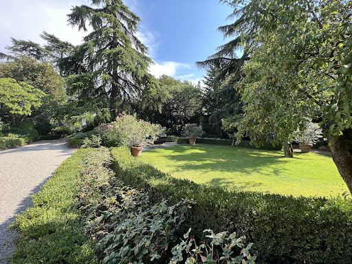 Il giardino interno è molto interessante con una serie di colonne ad arco che creano un porticato, con una vista sul mastio davvero suggestiva . Gli altri giardini all’inglese non sono visitabili ma da quello che si può vedere curati con amore.