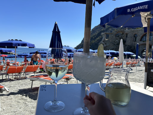 The water was clear and perfect for swimming. If you have small kids it would be better to go to the other beach in Monterosso, because here it gets deep fast. The staff was friendly. We had some good drinks and they have snacks like chips. But the focaccia was tasteless. Highly recommend getting this a few meters down the road at the old focaccia place.