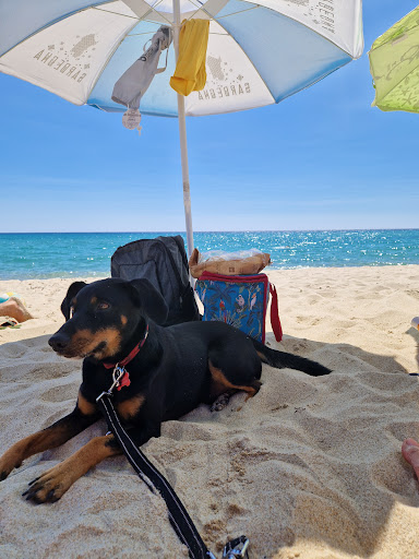 Eravamo diretti a Cala Pira, spiaggia segnalata su internet come accessibile ai cani, ma sul luogo abbiamo incontrato una pattuglia della polizia locale che ci ha segnalato che in realtà i cani non posso accedervi. Ci hanno perciò indirizzati in questa spiaggia, la quale ha ricevuto di recente l'autorizzazione per farvi accedere i nostri amici a quattro zampe. Grande spiaggia libera di sabbia bianca con acqua cristallina, molto tranquilla, nella quale poter passare una bellissima giornata al mare in compagnia dei...