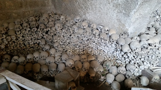 The Fontanelle cemetery in Naples is a charnel house, an ossuary, located in a cave in the tuff hillside in the Materdei section of the city. It is associated with a chapter in the folklore of the city. By the time the Spanish moved into the city in the early 16th century, there was already concern over where to locate cemeteries, and moves had been taken to locate graves outside of the city walls. Many Neapolitans, however, insisted on being interred in their local churches. To make space in the churches for the newly interred, undertakers started removing earlier remains outside the city to the cave, the future Fontanelle cemetery. The remains were interred shallowly and then joined in 1656 by thousands of anonymous corpses, victims of the great plague of that year.