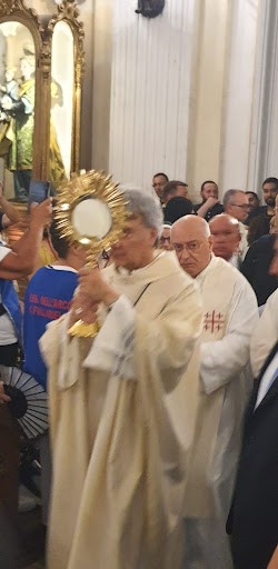 Un aneddoto importante che riguarda la chiesa è quello del miracolo del Crocifisso: si crede che il 17 ottobre del 1439 il crocefisso abbia abbassato la testa per evitare il colpo di una palla di cannone, durante l'assedio degli Aragonesi. Oggi la palla è custodita in una delle sale della Basilica.