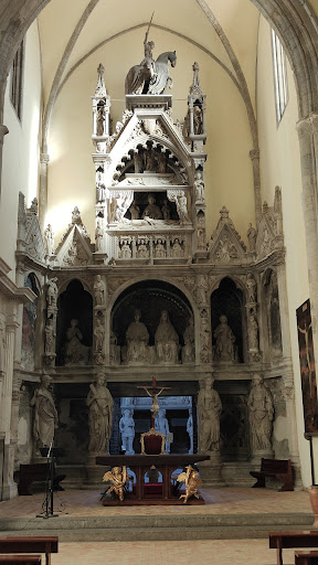 Read moreDopo la visita a questa chiesa non ho più alcun dubbio nell'affermare che fra tutte è LA PIU' BELLA ED EMOZIONANTE DI NAPOLI! Al varcare la soglia della porta si rimane completamente sopresi nell'osservare la maestosità e l'imponenza nella zona absidale del monumento funebre a re Ladislao di Durazzo: vero e proprio MAUSOLEO SCENOGRAFICO di epoca tardo-gotica addirittura su 3 livelli ed alto sino a 18 metri! Una vera e propria montagna di marmo con sculture, rilievi, colonne dove non solo è presente la coppia reale di Ladislao e della regina Giovanna in trono, ma anche una a cavallo (praticamente un monumento equestre!!) sempre del re Ladislao in abiti militari mentre sguaina la spada ( immagine del tutto inconsueta in una chiesa). Da molti storici questo monumento è stato definito il Pantheon del casato D’Angiò – Durazzo, realizzato per volere della Regina Giovanna, sorella di Ladislao. Ma le meraviglie non sono finite infatti alle sue spalle in un effetto di puro teatro, si accede alla BELLISSIMA Cappella Caracciolo del Sole con il monumento di Ser Gianni Caracciolo, siniscalco e amante della regina Giovanna! Datata alla metà del XV secolo presenta alle pareti un ciclo di affreschi con Storie eremitiche e Storie mariane ed un pavimento maiolicato anch'esso risalente al '400! A sinistra la cappella Caracciolo di Vico, fondata nel 1499 e compiuta nel 1516, è davvero SUPERBA per l'assoluto equilibrio e le armonie delle sue parti (sia architettoniche che scultoree). Di non minor prestigio la cappella di Somma, recentemente restaurata, che, conclude la carrellata dei magnifici sepolcri di San Giovanni, autentico “archivio marmoreo” delle famiglie più potenti di Napoli in quegli anni. Anche l'incredibile tavola di Giorgio Vasari rappresentante la Crocefissione fa parte di questo...
