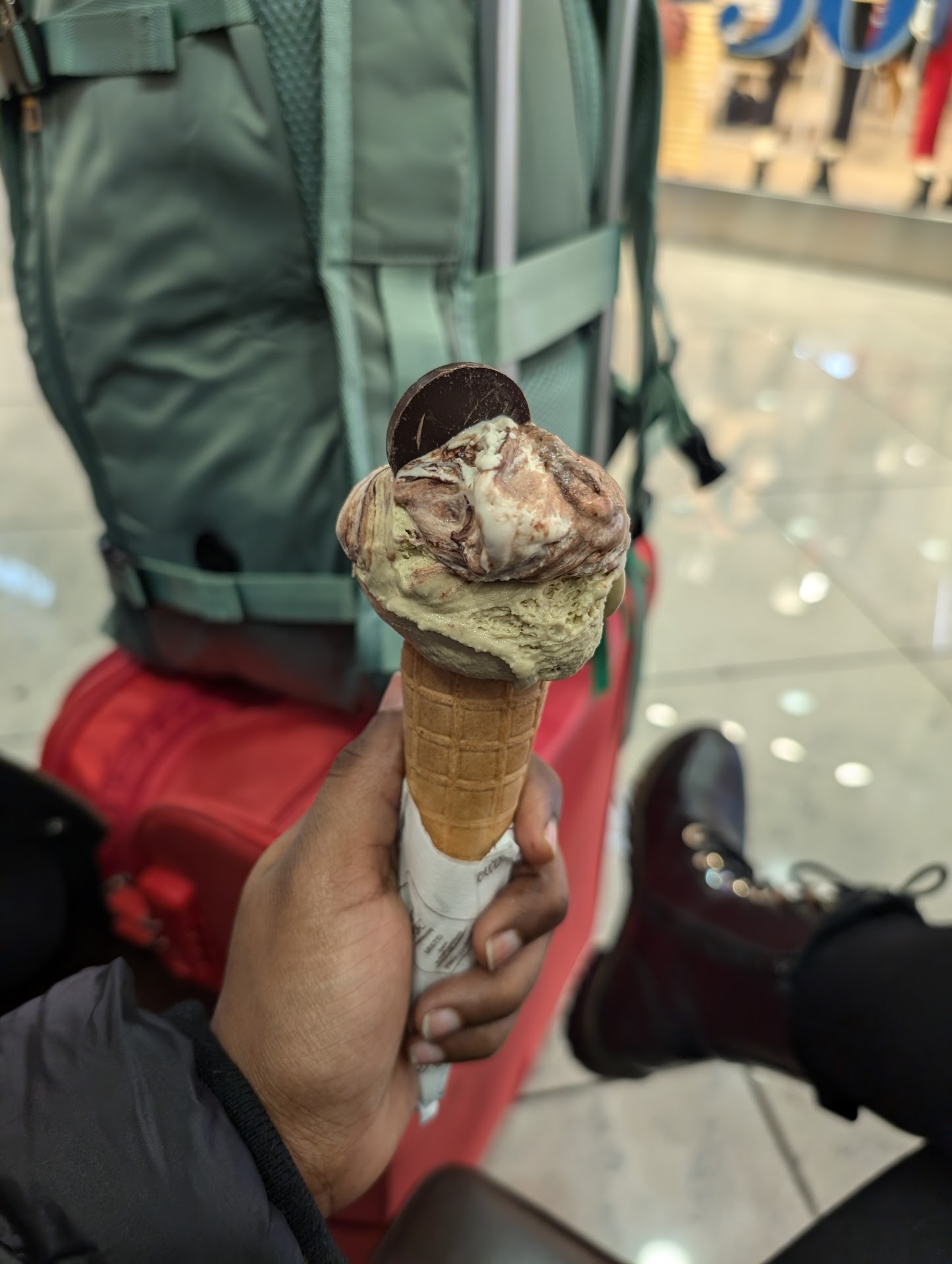 Read moreOur server, Anna was amazing and friendly, and helped us make really great decisions. The ice cream or gelato as they call it. Here was incredible and tasty. I got the pistachio and hazelnut flavors. Definitely don’t miss the cone dipped in chocolate with nuts. We had it at the airport, but it did not disappoint! We were at the Naples international airport. We also bought a ton of chocolate because it looked amazing and our friend recommended it! The chocolate that they put on top like a little discovered, it was...