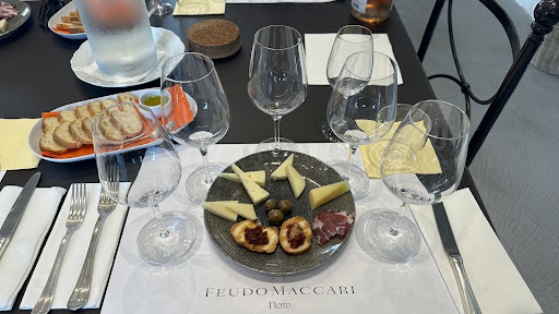 Feudo Maccari has the price list of one of the most prestigious wineries in the world but nothing else to support it. We paid €40 for 4 tasting glasses (and trust me, these were definitely tasting size - see pictures) and a very appetising plate of cheese. The cheese was the highlight.