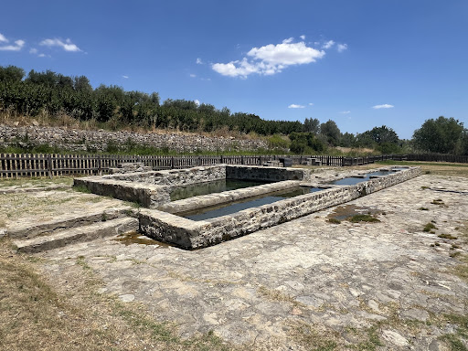 Read moreSe vi trovate a Nova Siri, non perdetevi Le Vasche di Sant'Alessio. Sono di origine romana, antichissime e collocate a ridosso del torrente Toccacielo, una vera testimonianza dell’ingegno del popolo romano. Non è facilissimo parcheggiare, nonostante la zona si trovi in aperta campagna, ma l'ultimo tratto è un po' difficoltoso per cui consiglio di parcheggiare poco prima. Le vasche sono sei e si riempiono continuamente d’acqua grazie a un sistema di sifoni. Peccato che non ho trovato da nessuna parte un cartello che spieghi il meccanismo. In una vasca, quella centrale, sgorga di continuo un'acqua bella limpida e dicono depurativa che in passato era utilizzata dalle massaie per lavare i panni e considerata un toccasana per tutti i malanni. L'età della costruzione coincide con la conquista romana della Siritide strappata all'egemonia dei Tarantini. C'è una leggenda carina intorno alle Vasche che narra di un incontro d'amore tra un frate ed una suora. Pertanto, si dice che ripetendo ritmicamente l'espressione "U Monac e a Monac" l’emissione dell’acqua aumenterebbe a vista d’occhio perché l'acqua ancora ribolle della passione tra i due. Storie...