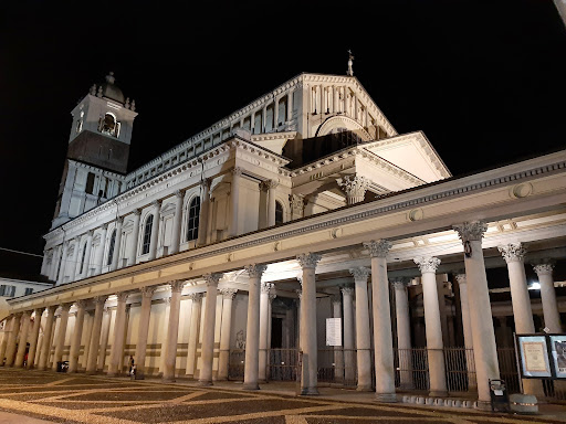 Read moreIl duomo, assieme agli altri edifici sacri ad esso connessi, si trova nel cuore della città, in piazza della Repubblica , dove sorgeva una precedente cattedrale romanica. Lungo il lato affacciato alla piazza l'edificio è delimitato da un colonnato; sotto al portico si trova l'accesso al sagrato, chiuso da una cancellata e circondato internamente da un ulteriore porticato. L'ingresso è situato sotto un pronao, costituito da quattro imponenti colonne scanalate, ornate da capitelli corinzi, che sorreggono il frontone di forma triangolare. La struttura interna è suddivisa in tre navate da possenti colonne in stucco marezzato di colore giallo-ocra. La navata centrale è coperta da una volta a botte mentre le navate laterali hanno copertura a calotta in ogni campata. Tra i dipinti più significativi troviamo lo Sposalizio di Santa Caterina di Gaudenzio Ferrari, oltre ad opere di Bernardino Lanino e Callisto Piazza. È di ragguardevole rilevanza anche il busto di San Bernardo di Mentone situato all'interno di un'edicola al di sopra dell'altare di San Gaetano. Esso probabilmente è una riproduzione fedele del volto del santo ottenuta dai calchi del viso. Di fronte alla chiesa, dall'altro lato del sagrato, sorge il Battistero paleocristiano, risalente al IV-V secolo, considerato il più antico monumento della città. L'edificio è a pianta ottagonale con absidi alternatamente rettangolari e semicircolari. Al centro vi sono i resti della primitiva fonte battesimale. Il disegno dell'altare maggiore, approvato nel 1836, appartiene...