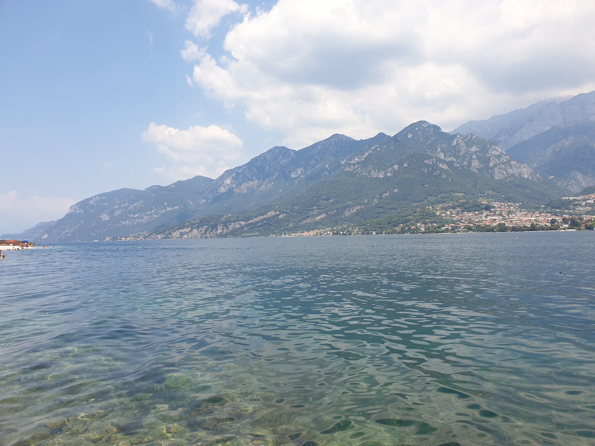 Viel erwarten sollte man nicht, es ist und bleibt ein See und da findet man keinen Sandstrand, außer der Sand wurde künstlich aufgeschüttet. Das ist ein Strand mit vielen Steinen in jeglicher Größe. Was sollte man dabei haben? Liegen/Klappstühle oder gut gepolsterte Decken, ganz wichtig Sonnenschirm, denn Ihr seid sonst der direkten Sonne ausgesetzt, und Sonnenbrand wollt Ihr Euch nicht holen, für diejenigen, die der Meinung sind, sie müssten sich nicht eincremen, oder nur mit niedrigem Schutzfaktor. An der Mauer gibt's ab Mittag gute schattige Plätzchen, könnten aber schnell weg sein. Übrigens, es gibt Parkplätze, aber auch nur limitiert, meist schon alle weg. Was wir noch sehr empfehlen würden, ist die Investition in Badeschuhe mit Gummisohle, denn der Weg ins Wasser kann auch schmerzhaft werden (algenbedeckte scharfe Steine) Meine Mädels waren so dankbar. Ach so, was die Wassertemperatur angeht, gefühlte 28° Wasser- bei 36° Lufttemperatur, für mich angenehm zum Baden, aber Erfrischung kann ich nicht behaupten. Zum Vergleich letztes Jahr waren Freunde mit ihren Kindern dort und sie hat noch Neos an. So und dann zum Schluss seid achtsam auf den engen, kurvigen Straßen entlang des Sees, könnte sein, dass Euch ein LKW entgegenkommt, und nicht gerade langsam. Italiener lieben Speed und überholen sogar wenn sie müssen. Schönen Urlaub, viel trinken und ordentlich eincremen 30+ mindestens, Ihr werdet trotzdem einen schönen...