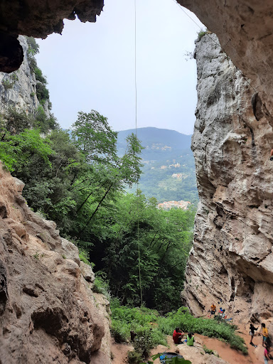 Very cool place. Its just a small hike from the parking area, it's short but steap. So be prepared. The cave it self is maybe 100 m long and cool. It goes from. One end to another. So it's more like a tunnel in the mountain. There is a lot of rock climbing in the area, even around the entrence to the cave. We tried to fly a drone around here. Maybe wasent the best idea since we almost lost it. Anyway. A nice cave. Worth the visit if you are...