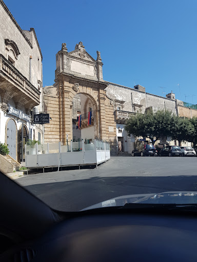 Precioso pórtico de entrada al centro histórico de la ciudad. Merece la pena detenerse en la plaza a tomar algo y contemplarla por lo bella que es. También conocida como Puerta de Lecce, pues hacia esta ciudad está orientada. O también como Puerta de los españoles, en memoria de la entrada de las tropas en 1504 después de un largo asedio a la ciudad. Fue reconstruida en 1727 por el Marqués de Oria, y conserva así el estilo barroco. De entrada a la ciudad se observa una lápida con una inscripción latina que hace referencia a su construcción. Tiene el escudo de la ciudad. Visto desde la plaza, hay un bonito fresco de la Crucifixión de Jesús,...