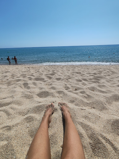 Read moreSpacious and quiet beach but more wild than cozy. An avid beach lover will not find the white smooth sand and calm water here. Some spiky plants are present in the water and in the sand, and need to be carefully avoided. Water is clear but more wavy than hoped for. Otherwise, stunning scenery with a backdrop of pine trees. Umbrella rental rather expensive: 18€...
