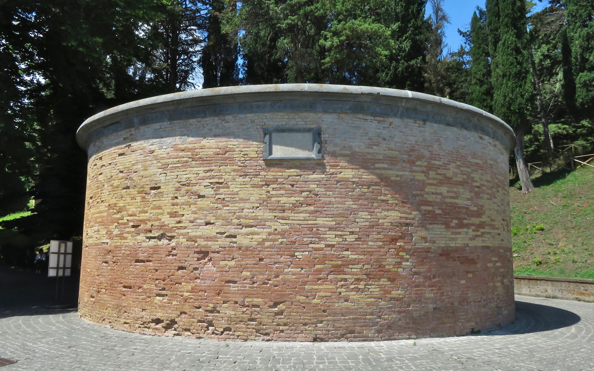Sull'ingresso del pozzo la scritta "quod natura munimento inviderat industria adiecit" ("ciò che non aveva dato la natura, procurò l'industria") celebra l'ingegno umano come abile mezzo in grado di sopperire alle carenze della natura.[1]