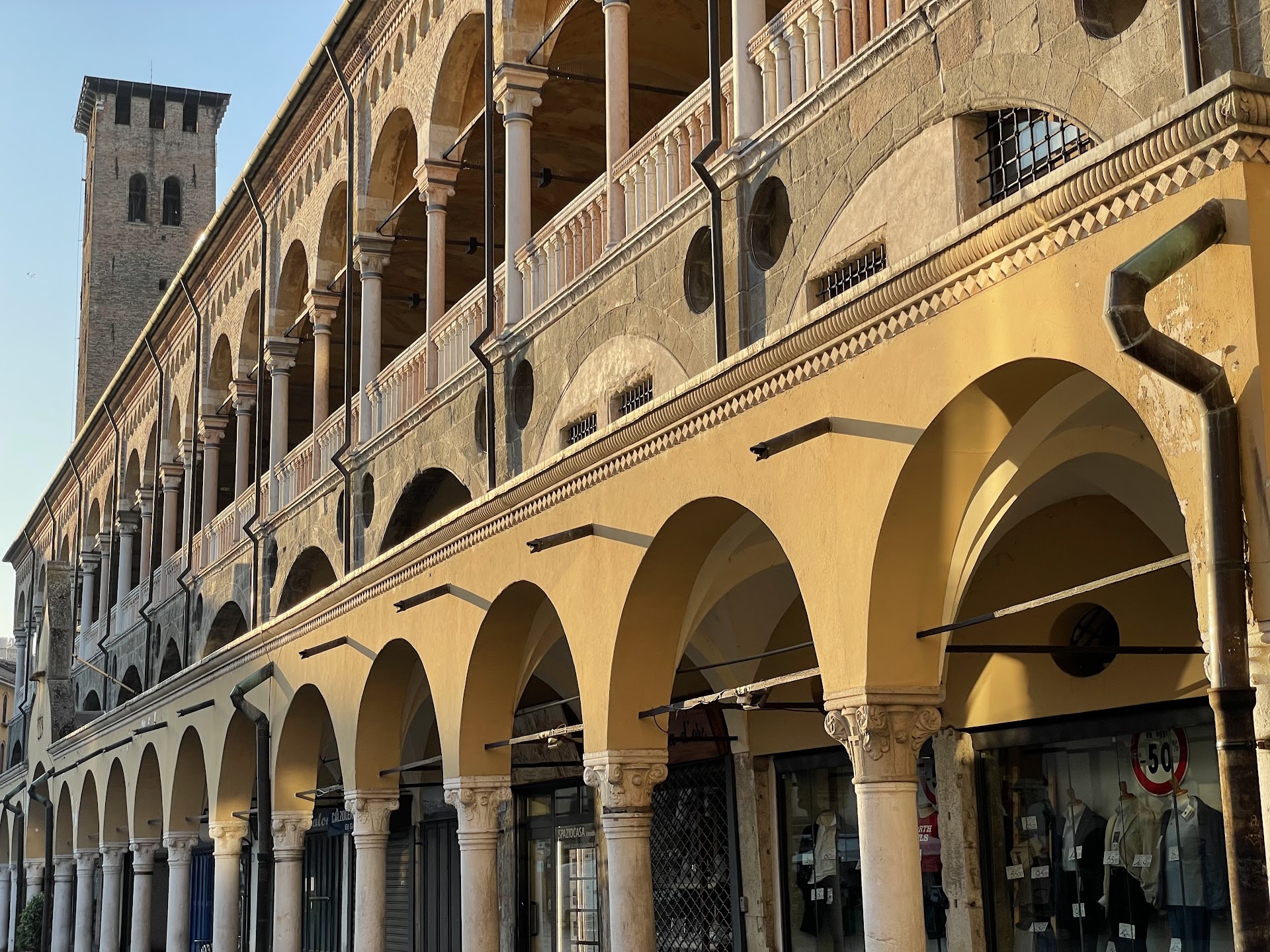 Read moreIt was once called the "Peronio", because they were sold near a column, clogs and boots called in Latin "perones". This Romanesque column, still visible at the entrance to via Breda, is surmounted by a capital at the corners of which are depicted a pumpkin, a palm, a melocotogno, a pear tree. Above the capital there is a parallelepiped in Istrian stone, in which the coat of arms of the city of Padua is depicted, that is, a shield with a cross and St. Prosdocimo, the first bishop of the city. In the square, on the day of the "zobia masa", that is the first Thursday in May, the Fraglia degli "strazzaroli", second-hand dealers and merchants of second-hand goods, put on a show with the greasy tree. The prize consisted of a bag and gloves, which is why it was called "Festa della Borsa".