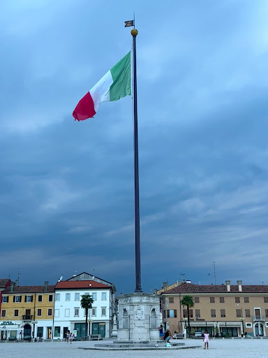 Piazza Grande is also known as Piazza dâArmi and itâs the hexagonally shaped center of Palmanova, a star-shaped fortress town in northeastern Italy. Its six-sided form from which radial streets emanate gives the town its distinctive star shape. Palmanova was built by the Venetians around 1593 as a sophisticated defensive stronghold against Turks to the east and Austria to the north. A tall flagpole known as the stendardo is in the center of the Piazza Grande. It is nicknamed âMarioâ by locals and has held various ensigns through historyâVenetian, French, Austrian, and now Italian.
