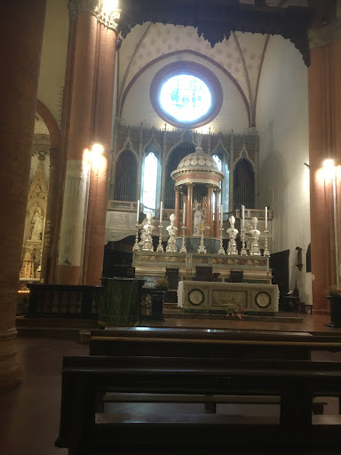 Read moreLa Chiesa di Santa Maria del Carmine, situata nel cuore di Pavia, è un notevole esempio di architettura gotica lombarda. La sua costruzione, iniziata nel 1374 per volere dei carmelitani, si è protratta per quasi un secolo a causa della priorità data dai Visconti alla costruzione della Certosa di Pavia. Completata nel 1461, la chiesa sorge su un precedente edificio romanico dedicato ai Santi Faustino e Giovita. La facciata, maestosa e in cotto, presenta elementi romanici e gotici, con un grande rosone centrale circondato da sculture, tra cui l'Annunciazione dell'arcangelo Gabriele e della Vergine Maria, recentemente restaurate e sostituite con copie in 3D per preservare gli originali. L'interno, a croce latina, è suddiviso in tre navate e presenta numerose cappelle laterali con decorazioni di epoca rinascimentale e affreschi votivi del Quattrocento. Il campanile del 1450, con la sua struttura cuspidata e le eleganti bifore, domina il panorama della città, mentre la piazza antistante arricchisce l'insieme storico e urbanistico con edifici rinascimentali, come Palazzo Langosco-Orlandi. Visitare questa chiesa è un'esperienza che unisce storia, arte e spiritualità. La quiete del luogo e i dettagli architettonici offrono uno spazio ideale per la riflessione, mentre la luce che filtra dalle vetrate policrome dona una suggestiva atmosfera di...
