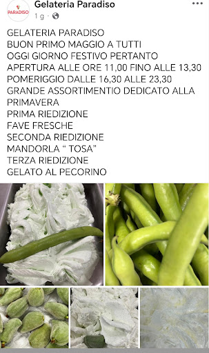 Read moreLa grande passione e l'esperienza del Signor Nino sono il biglietto da visita di questa gelateria. Il Signor Nino saprà guidarvi con la sua simpatia e professionalità, in un viaggio alla scoperta di nuovi sapori e gusti. La sua arte gelataia potremmo definirla non convenzionale. È capace di sposare armoniosamente il dolce e il salato nel suo gelato. Partendo da materie di prima qualità riesce a creare gusti innovativi disponibili a rotazione ogni domenica. Abbiamo assaggiato per fare un esempio questa domenica, fave e pecorino. Meritano l'assaggio anche i buonissimi gusti alla frutta, lo speciale frozen yogurt greco e i frullati. Insomma mangiare un gelato alla gelateria Paradiso è un'esperienza da vivere. Consigliatissimo......assaggiare per credere, non ve ne...
