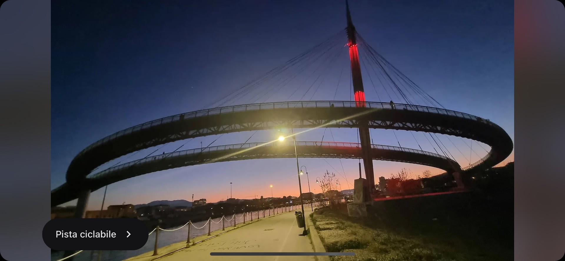 Bel ponte pedonale e ciclabile che unisce Pescara nord a Pescara sud, ha una forma ad arco doppio che ricorda il mare. Molto suggestivo la sera con l'illuminazione colorata. Al centro però si sentivano delle oscillazioni.