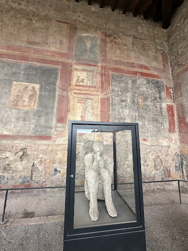 Spoiler 🚨: si piensas que llegarás al lugar de las películas donde la lava cubrió la ciudad lamento decepcionarte. Esto sucedió en otra ciudad más cerca del Vesubio que se llama Herculano. En Pompeya cayó una nube de ceniza que colapsó las casas y gracias a las excavaciones y a una técnica para rellenar espacio con yeso se recrearon personas que fallecieron en el momento de la erupción del 79 DC. Es un sitio arqueológico de gran extensión, considero vale la pena ir con un guía que te lleva a través de sus múltiples curiosidades para adentrarte en lo que he la vida de esta popular ciudad. Es pet friendly pero solo perros pequeños. Es mejor llegar a primera hora porque hay menos gente. Lleva sombrilla y zapatos cómodos. El baño solo está en la entrada, toma...