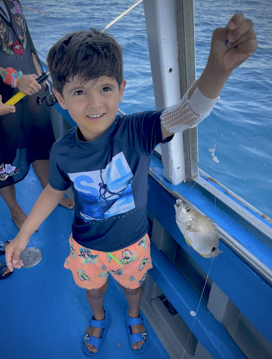 Read moreSe non sapete come dare una connotazione di bellezza , serenità e felicità a qualche ora della vostra giornata....scegliete Giovanni,Barbara e la piccola Maria.... ovviamente "piccola" perché e' la loro bimba adolescente,ma in realtà già competente,che aiuta e si da da fare per sbrigare le varie commissioni di bordo, ci ha aiutati a slamare i pesci pescati, ci ha intrattenuti piacevolmente con racconti,storie e indovinelli....a farla breve , perché ci sarebbe veramente tantissimo da dire....ha reso il nostro pomeriggio uno spettacolo!!!! Una famiglia SPLENDIDA,che ci ha accolti a bordo della loro imbarcazione con simpatia...ci ha fatto trovare tutto pronto per la pesca...e per finire in bellezza ci hanno fatto far parte tutti di un' unica famiglia speciale facendoci banchettare tutti insieme per farci mangiare il nostro pescato cucinato da loro e con altre prelibatezze locali....porteremo con noi nel nostro cuore ....tutto di quella sera....dai colori impressi nei nostri occhi, dalle risate fatte tutti insieme....dai sapori che abbiamo avuto l' onore di apprezzare...con quei profumi di ottima cucina in mezzo al mare.....con lo scenario più bello...tramonto....e il saluto finale della luna piena! Grazie di cuore e un bacino speciale a Maria, da Gabriele e Chiara dalla...