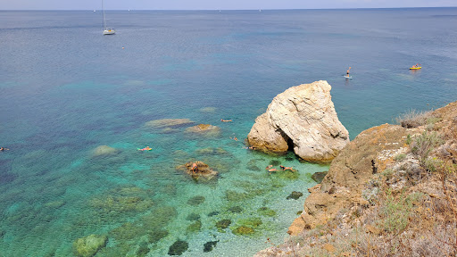 Read moreUna delle spiagge più belle dell'isola. Fatta da ciottoli bianchi e tondi, che creano un fondale meraviglioso, pieno di pesci e perfetto per lo snorkeling. L'acqua scende rapidamente quindi non è molto adatta ai bambini. Separata dalla spiaggia di Sansone da uno sperone di roccia con uno scoglio alto una decina di metri che si può scalare per fare qualche tuffo adrenalinico da diverse altezze. Tra le due spiagge c'è un bar carino e ombreggiato, con docce e bagni e che offre due belle viste delle spiagge dall'alto. Il parcheggio dista 10 minuti a piedi che al ritorno sono tutti in salita: fatica comunque ben ripagata dalla...