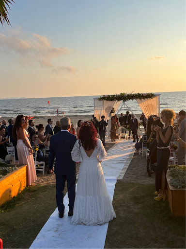 Read moreMatrimonio del 23/07/22 Quando abbiamo iniziato a girare per trovare la location che meglio potesse rispecchiarci per il nostro grande giorno, ed essendo noi sposi non “classici” ma alquanto rustici, nulla aveva soddisfatto le nostre aspettative. Arrivati al Key Beach, abbiamo capito fin da subito che eravamo entrati in un altro mondo, diverso da tutti gli altri. Lì abbiamo ritrovato il connubio perfetto delle caratteristiche che fino a quel momento avevamo solo sognato: spazi ampi, spiaggia immensa, atmosfera e panorama eccezionali. Grazie al Direttore, una persona estremamente accomodante, abbiamo visto i nostri pensieri prendere forma e man mano, con il prezioso aiuto della simpaticissima wedding planner Teresa, abbiamo potuto esprimere le nostre personalità attraverso le più piccole cose, anche quelle su richiesta. Per esempio, ho voluto creare di persona alcuni degli elementi per la serata e ho chiesto di avere più torte su vari livelli per il taglio della torta anziché la classica torta nuziale. No problem! Hanno accolto senza problemi tali richieste. Non hanno mai posto paletti come tutti gli altri locali per cerimonie, ma invece hanno cercato di accontentarci in tutto con una mentalità aperta che raramente si ritrova in queste situazioni. Il tutto senza distaccarsi minimamente dallo stile e dall’eleganza che li contraddistingue. Durante il giorno del matrimonio, Teresa mi è stata sempre vicina, lo staff capitanato da Alex si è mostrato estremamente professionale e disponibile ed il Direttore non hai mai perso di vista gli avvenimenti in corso. Tutto è stato perfetto, dall’allestimento dei fiori a quello per il rito in spiaggia, dall’atmosfera del buffet sul prato al servizio ed i particolari in terrazza. A distanza di mesi stiamo ancora ricevendo i complimenti per la scelta fatta e per le prelibatezze che sono state servite in modo ineccepibile. Se potessimo tornare indietro sceglieremmo il Key Beach...