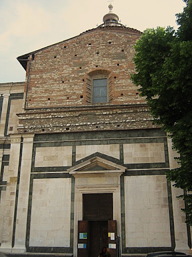 Las incrustaciones decorativas de mármol blanco y verde del exterior se inspiran en los edificios florentinos de comienzos del Románico. Gracias a su sencillo rigor geométrico se consigue una síntesis perfecta con el auténtico cuerpo arquitectónico. El campanario data del siglo XVIII.