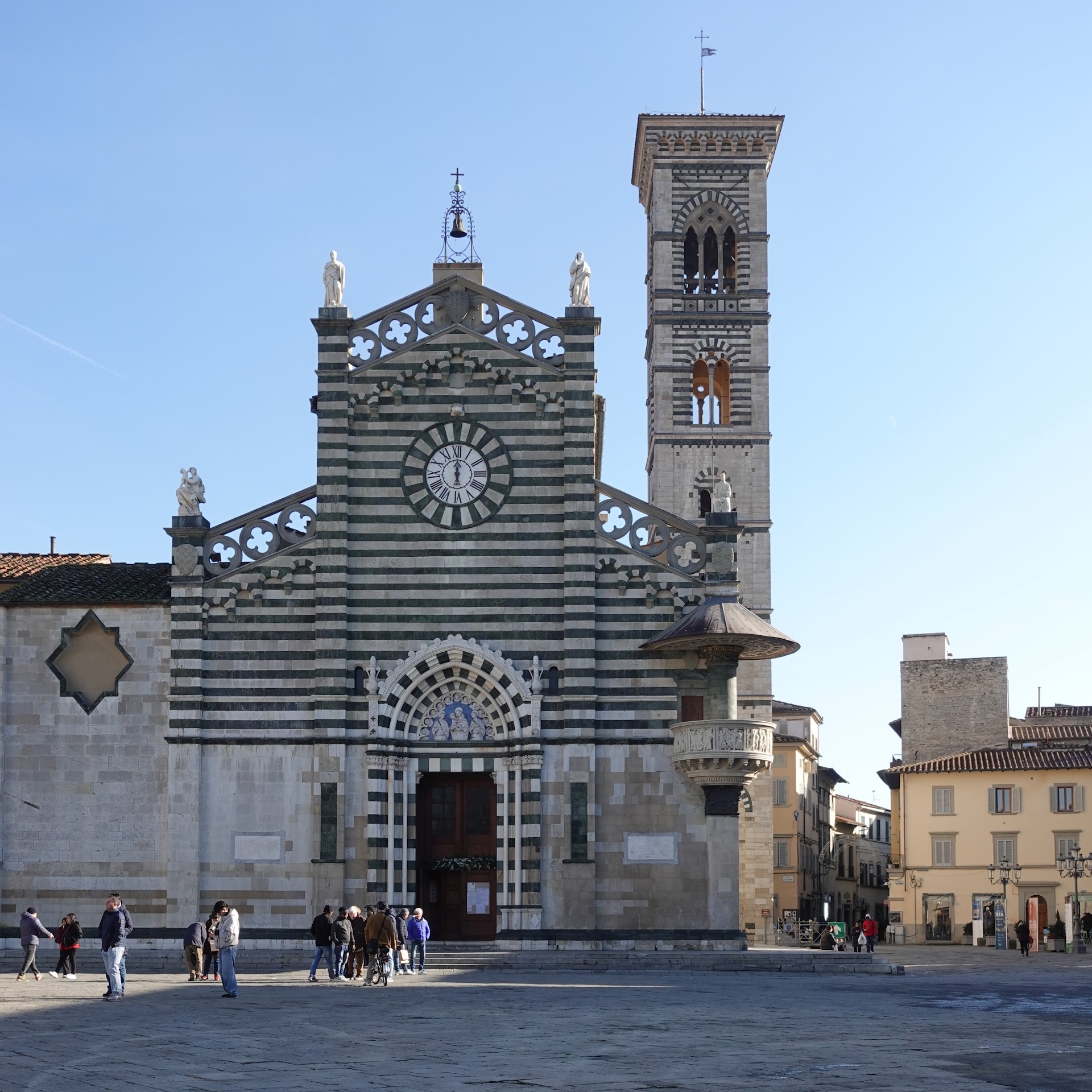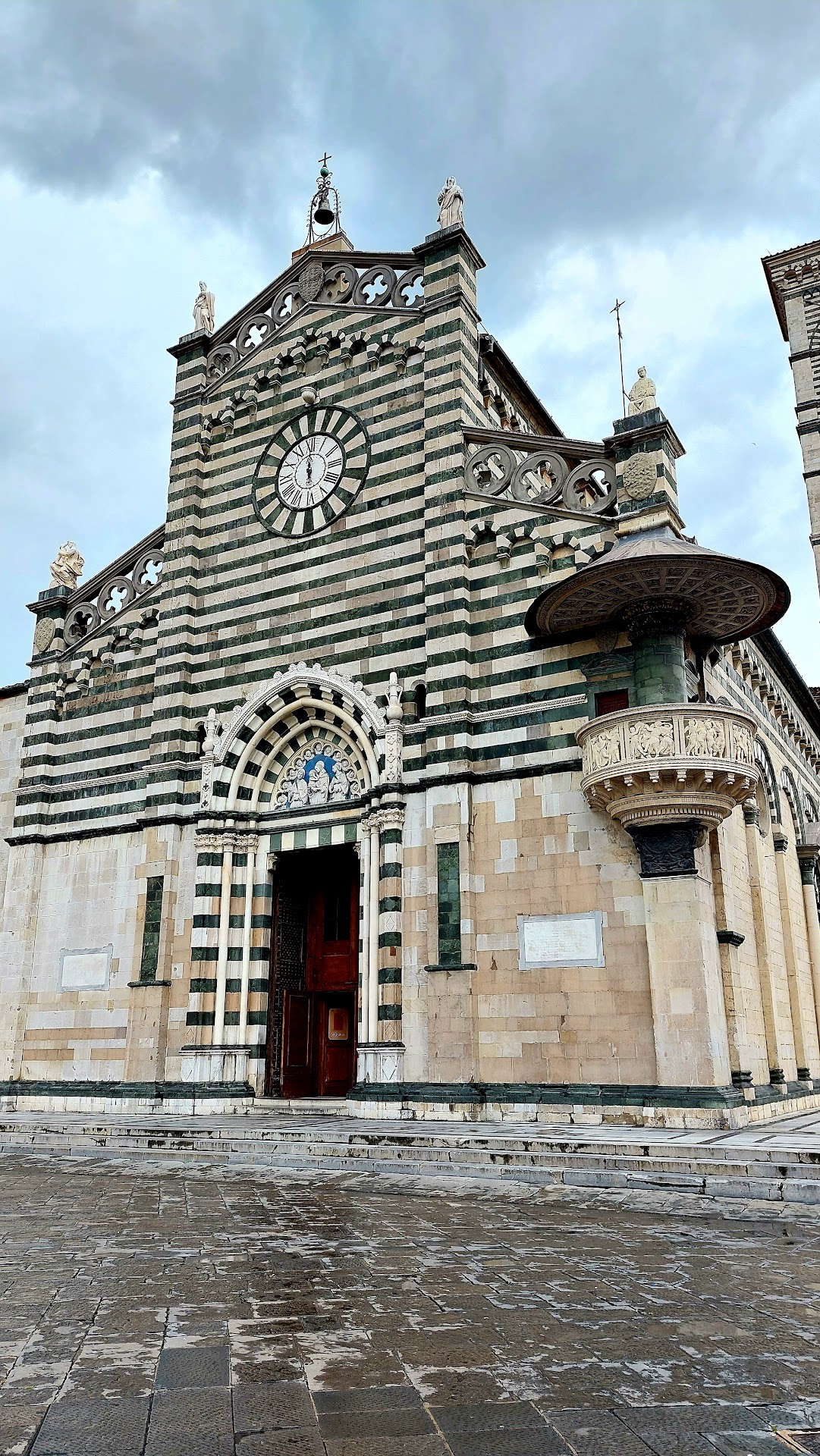 Read moreÈ una facciata, quella della cattedrale di Santo Stefano, che non vuol nascondersi a chi ha l'ardire non solo di guardarla ma anche di osservarla attentamente, anzi si pone sfrontatamente davanti agli occhi del viandante con le sue due pietre, alberese e serpentina, a conquistare il viandante. E poi se scruti il lato destro con fare disinvolto, la facciata ti cattura definitivamente attraverso le sembianze di un pulpito marmoreo che ostenta la fisionomia di un piccolo tempio. Donatello e Michelozzo hanno qui espresso ai massimi livelli il loro genio artistico. Il portale d'ingresso alla cattedrale, massimo espressione dello stile gotico romanico ospita sulla lunetta una splendida terracotta invetriata di Ansrea Della Robbia, raffigurante la Madonna tra Santo Stefano e San Lorenzo. L'orologio, settecentesco, incastonato nel livello centrale della facciata sopra il portale, abbellisce la struttura architettonica. L'interno, a croce latina, è ripartito in tre navate divise da arcate sorrette da colonne in marmo serpentino. Il pulpito in marmo bianco costituisce un prezioso lascito dell'arte scultorea rinascimentale impreziosita da eleganti rilievi narranti le storie del Battista di Santo Stefano e con la mistica figura dell'Assunta. Rossellini e Mino da Fiesole si sono divisi con pregio artistico elevatissimo il lavoro di creazione della figurazione che costituisce l'anima del pulpito. Le cappelle absidali sono riccamente decorate con affreschi realizzati da Fra Filippo Lippi, Paolo Uccello, Alessandro Franchi e dal maestro della cappella Manassei. Le vetrate che decorano il fondale delle cappelle sono opere di altissima e finissima capacità artigianale non disgiunte da eccelso splendore artistico. Per la cappella del sacro cingolo sarà necessaria una nuova visita in quanto la cancellata ne ha...