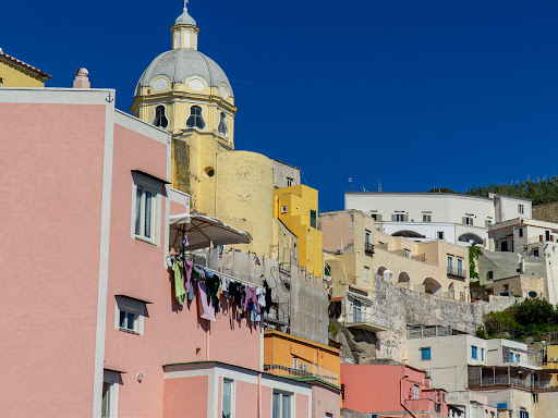Read moreLa chiesa, di colore giallo e di gusto barocco, con la sua mole cattura l'occhio del turista che, da terra o da mare, guarda Marina di Corticella. Sorge a poca distanza dalla principale piazza del paese e, date le forme interne semplici ed austere, è molto più scenografica dall'esterno. Gli stucchi sono di gusto settecentesco, la pala d'altare, di fattura non eccelsa, è un ex voto che i procodani commissionarono per ringraziare la Madonna per averli liberati dalla peste. Poco distante, in via San Rocco, sorge invece una piccola chiesa, praticamente una cappella con campanile a vela, dedicata al santo omologo, che consiglio di visitare perché molto più...