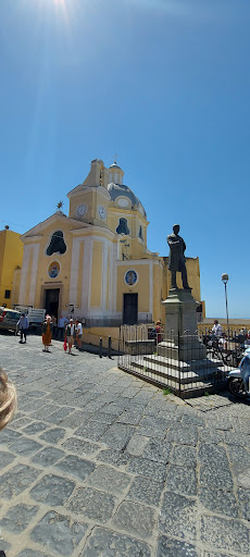 Read moreLa chiesa, di colore giallo e di gusto barocco, con la sua mole cattura l'occhio del turista che, da terra o da mare, guarda Marina di Corticella. Sorge a poca distanza dalla principale piazza del paese e, date le forme interne semplici ed austere, è molto più scenografica dall'esterno. Gli stucchi sono di gusto settecentesco, la pala d'altare, di fattura non eccelsa, è un ex voto che i procodani commissionarono per ringraziare la Madonna per averli liberati dalla peste. Poco distante, in via San Rocco, sorge invece una piccola chiesa, praticamente una cappella con campanile a vela, dedicata al santo omologo, che consiglio di visitare perché molto più...