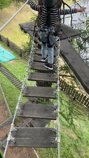 Read moreMy daughters convinced me to join them on the red parcours. With my fear of heights I hobbled behind them wondering what I had gotten myself into and swearing not too do this ever again. With both feet on the ground I proclaimed proudly that it was great and couldn't wait to do it another time, eg when they invent a black route.