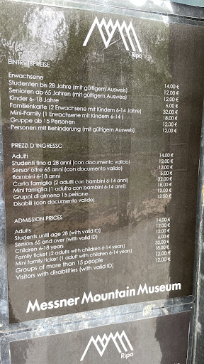 Read moreI thoroughly enjoyed my visit - you can easily spend several hours here. The castle itself is interesting, and it's nice to see both the very old original walls, and some well-fitting modern restorations / embellishments. It's a pretty walk up to it from the town centre. The exhibition in this museum (out of a total of 6 Messner mountain museums) is focussed on mountain people, so there are lots of artefacts showcasing the culture and way of life of such populations from all over the world. Genuinely new and educational to me. The castle also has a great little cafe / restaurant. The visit price of 9 Euros is well worth it, and if you are in the region for a while, the 35 Euro ticket for all museums, valid for a year, is...