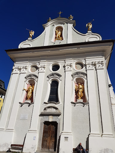 Read moreDalla facciata imponente e posta al centro della via , quasi a chiudere la prospettiva del corso principale dei negozi , da un tocco di centro imperiale , seppur San Candido è un piccolo paese , ma il più vivace e raffinato della zona , anche oltre alla provincia di Lienz . Le sculture dorate sono molto presenti e la figura dell'Arcangelo guerriero assume il ruolo di protettore del centro , posto in alto ad incutere una certa suggestione e rispetto . Il sagrato della chiesa forma la piazzetta prima della piazza principale soltante a destra dell'edificio , da un senso di respiro urbano ed architettonico . In poche parole , quando percorri questa via e trovi ad aspettarti questa chiesa , provi un senso di nobiltà e solennità che pochi centri storici possono vantare ....