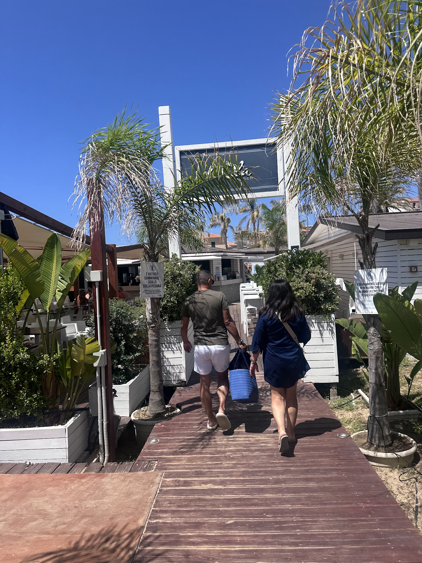 Convenient location a few steps from the boardwalk and port of Marina di Ragusa. The accommodations by the sea include beach loungers and umbrella at 21€ pp with changing rooms and shower access. We were a party of 5 and enjoyed a pleasant and refreshing (the water although it looks like the Caribbean it is as cold as the Atlantic, be prepared!) swim in the open Mediterranean seas. Note that at times the wind can be very strong and the staff will politely insist that they close the umbrellas--this is for your safety, just add another layer of sunscreen or a beach covering to protect against the sun. We also had a casual beachside lunch -- fried potatoes, salad, Italian style quesadilla (with provolone & prosciutto) and a tuna poke bowl, water and cocktails. The outdoor showers require a fob and the cabanas are tiny (think vintage telephone booth) and the chair takes up almost a 1/4 of the space; it might be wiser to change in...