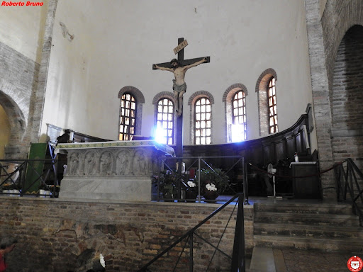 Read moreLa Basilica si trova nella cosiddetta "Zona del Silenzio" di Ravenna, ideata nei primi decenni del XX secolo intorno al luogo di sepoltura di Dante Alighieri, come forma di massimo rispetto per l'ultimo luogo terreno dove il sommo Poeta visse e morì. La Basilica fu frequentata da Dante in vita, vivendo lì vicino e in questa chiesa furono celebrati i suoi funerali il 13 settembre 1321. Le sue spoglie furono temporaneamente poste all’interno di un bellissimo sarcofago del IV secolo d.C., situato nella cappella della famiglia dei Da Polenta, disposta lungo la navata di sinistra. La Basilica era dedicata in origine ai SS. Apostoli e poi a San Pietro ed è tra le più antiche della città (risale alla metà del V secolo d.C.). Ben poco rimane della prima chiesa paleocristiana. Tra il 1261 e il 1810, e poi di nuovo tra il 1949 fino a oggi, i monaci Francescani la scelsero come loro sede con l’attuale intitolazione a San Francesco. Prospetta sulla piazza con il bel campanile del IX secolo. L'interno è basilicale a tre navate, separate da due file di 12 colonne ciascuna, di spoglio. L'abside è semicircolare all’interno ed eptagonale all’esterno; per il fenomeno della subsidenza appare oggi ribassata di 3 metri e mezzo rispetto al pavimento più recente. Sotto l’attuale altare si trova la cripta che non è accessibile perché costantemente allagata, tuttavia si può ammirarne l'aspetto, con gli splendidi mosaici pavimentali, attraverso una piccola finestra ad arco protetta da una balaustra. L'acqua è di falda e, a seconda delle piogge e del livello del mare, varia in altezza durante l’anno. Non è acqua di mare, ma acqua dolce filtrata e lo dimostrano i pesci rossi che vi nuotano a decine. I mosaici risalgono al periodo tardoantico (V secolo d.C.) e furono oggetto di restauro nel 1877. Su di loro sono riportate due epigrafi in mosaico, una in greco e l’altra in latino. La cripta si data al X secolo; è un ambiente a forma di oratorio sorretto da pilastrini destinato ad ospitare le reliquie del vescovo Neone, fondatore della chiesa. Il sarcofago fu tolto perché sempre sommerso e fu trasferito di fronte alla finestra di accesso alla cripta. Si tratta di un piccolo sarcofago che riporta la scritta “Ossa Neonis”, a ricordo che un tempo qui era stato sepolto Neone, vescovo di Ravenna e committente della primitiva chiesa dedicata ai Santi Apostoli Pietro e Paolo. All'esterno, nell'area sacra recintata, sono esposti diversi sarcofagi, la base della porta che chiudeva l'accesso al luogo dove furono temporaneamente nascoste le spoglie dell'Alighieri tra il 1805 e il 1875. Vi si trova anche il cespuglio dove furono nascoste. A due passi vi è la Cappella/Mausoleo dove la tradizione colloca la tomba di Dante. La Basilica si completa con due chiostri monumentali ad accesso libero, come la Basilica. Il loro ingresso non avviene dalla chiesa ma lungo l' ingresso laterale...