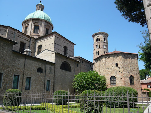 Read moreCol passaggio della sede vescovile da Classe a Ravenna alla fine del IV secolo, fu iniziata una nuova cattedrale, la Cattedrale Ursiana (dal nome del vescovo Orso Ursus), della quale sopravvivono pochi resti inglobati nell'attuale duomo di Ravenna e nell'attiguo Museo arcivescovile. Il Battistero fu avviato nei primissimi anni del V secolo dallo stesso vescovo Orso e terminato verso il 450 circa. Neone, nel 458 circa, intervenne con importanti opere strutturali, in particolare con la costruzione della cupola (alleggerita da tubi fittili) in sostituzione del soffitto originariamente piano, cupola che fu decorata con ricchi mosaici ancor oggi visibili.