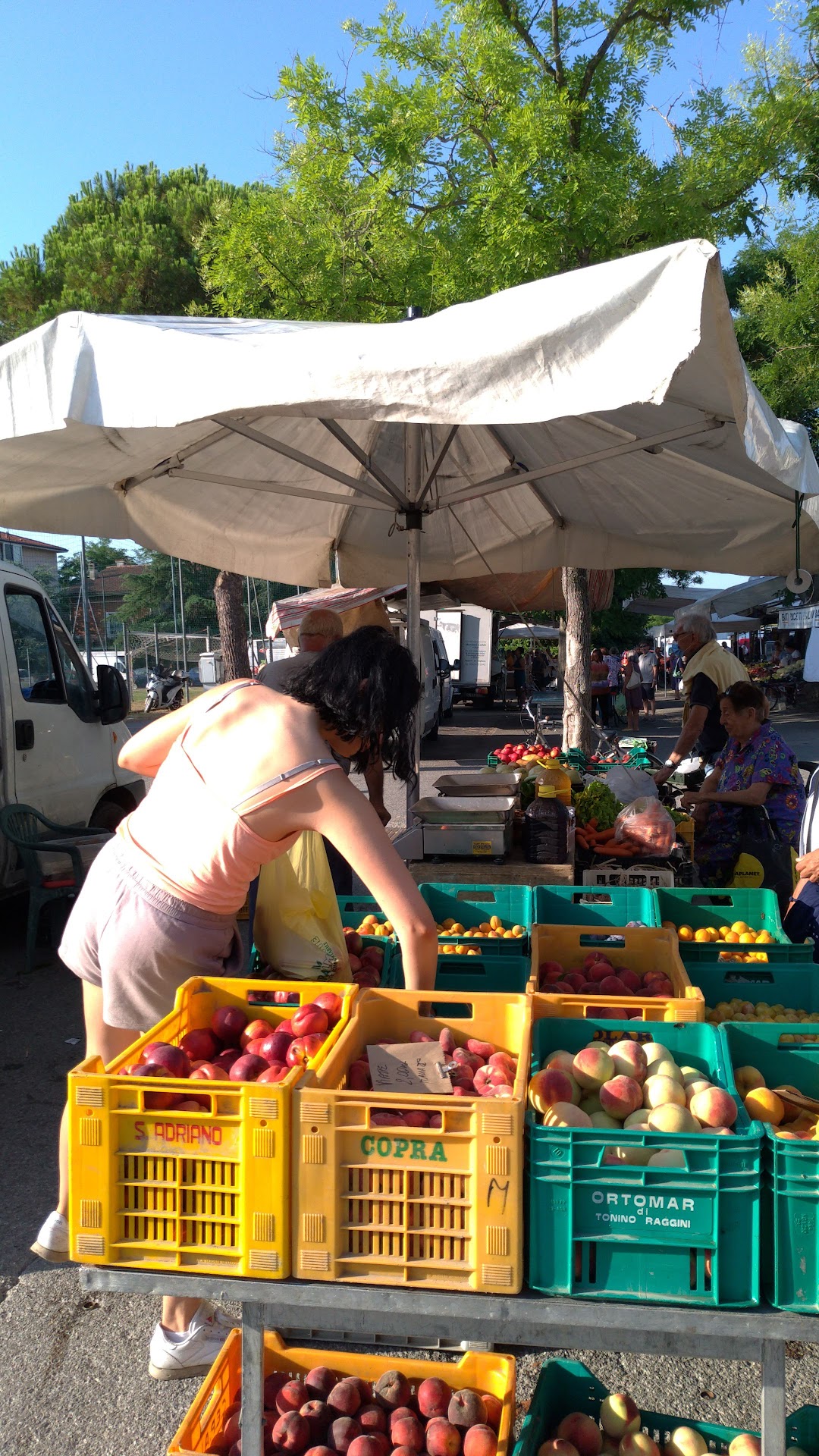 Huge market Wednesday and Saturday mornings behind the stadium in Ravenna. Fruit, veg, bread, cheese, olives, dried mushrooms, fish, cold meats, sweets, pizza, clothes, bags, shoes, bedding, towels, cushions, baskets, kitchenware, tools, flowers, plants, seeds, bulbs... and much more. Some stuff really cheap, but overall good/useful stuff, good quality food no cheaper (but often better) than in the supermarket. Parking chaotic. Walking distance from children's library where they often have readings on Saturday mornings. Nice outing to...